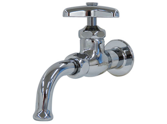 2019/08/23神奈川県鎌倉市で、厨房の単水栓(立水栓)を交換しました。 鎌倉市八幡宮の店舗で、厨房の立水栓のフレキ管が外れて水漏れしていました。 -