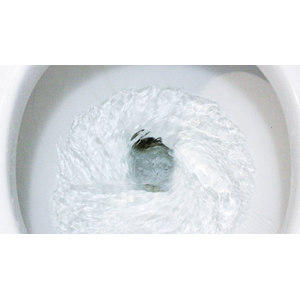 ・トルネード洗浄:大4.8L・小3.6Lの超節水トイレ「ピュアレスト」の洗浄水量は従来の節水便器(13L)の約1/3。便器上部から渦を巻くようなトルネード水流で、ボウル全体をぐるりとくまなく洗浄します。